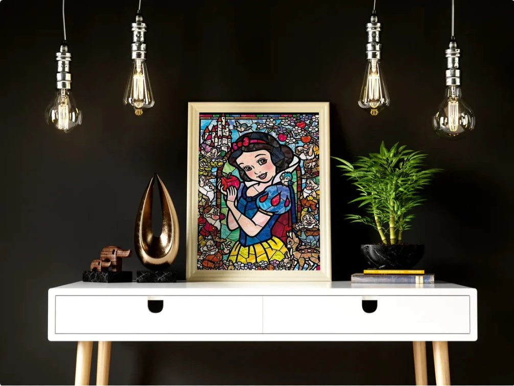OSEREZ-VOUS CROQUER DANS LA POMME ? CETTE BRODERIE DIAMANT BLANCHE NEIGE EST UNE DÉCORATION MAGNIFIQUE POUR VOTRE INTÉRIEUR, CAR ELLE EST COMPOSÉE DE LA PRINCESSE ENTOURÉE DES ANIMAUX DE LA FORET ET DE SON CHÂTEAU. A BRODER SEUL OU EN FAMILLE !
