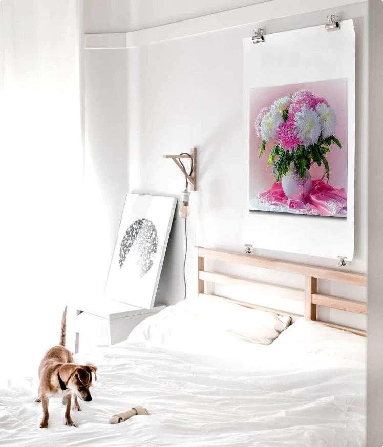 LA PIVOINE EST RÉPUTÉE POUR REPRÉSENTER UN AMOUR ÉCLATANT. UNE BRODERIE DIAMANT D’UN BOUQUET DE PIVOINES EST DONC L’ÉLÉMENT À AVOIR CHEZ SOI POUR DÉGAGER CETTE ONDE D’AMOUR ET DE PASSION.