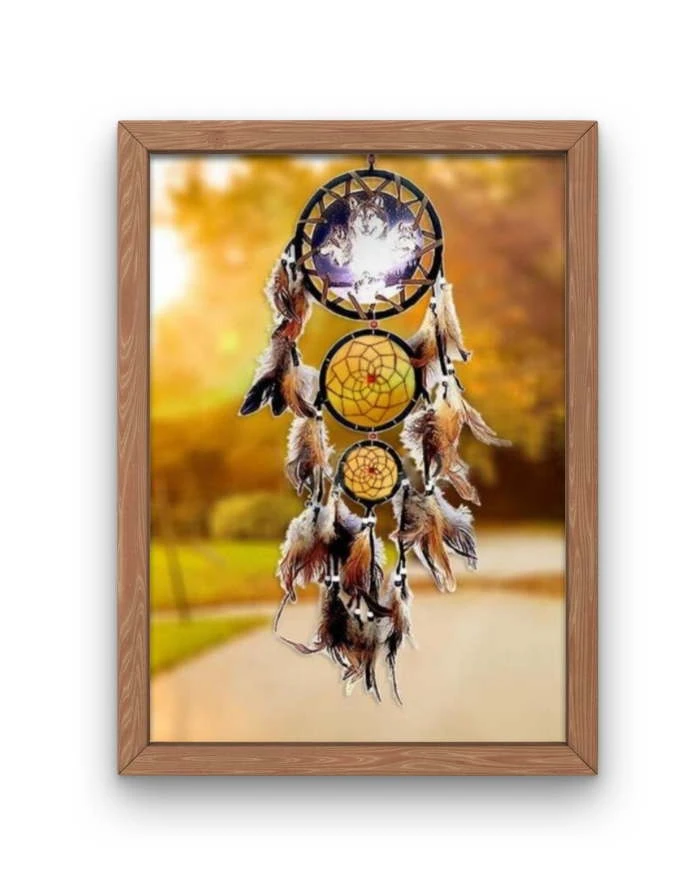 La saison d’automne et ses couleurs orangées est représenté sur le fond de cette superbe broderie diamant attrape rêve… Collez les diamants colorés et amusez-vous !