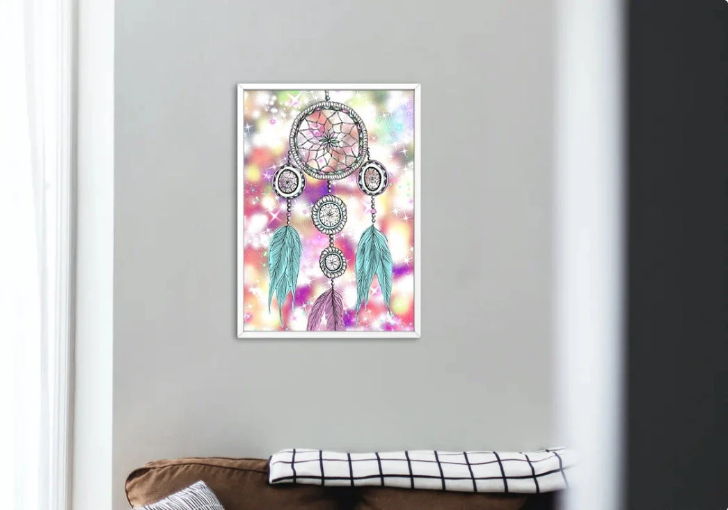La Broderie Diamant Attrape Rêve Étincelant est très colorée, mais surtout possède des étoiles donnant un aspect intensément brillant ! Si vous aimez les activités manuelles et créatives, dans ce cas vous allez adorer poser vos diamants brillants sur cette superbe peinture diamant ! L’attrape rêve va peut être capturer vos mauvais rêves dans la nuit, qui sait ?