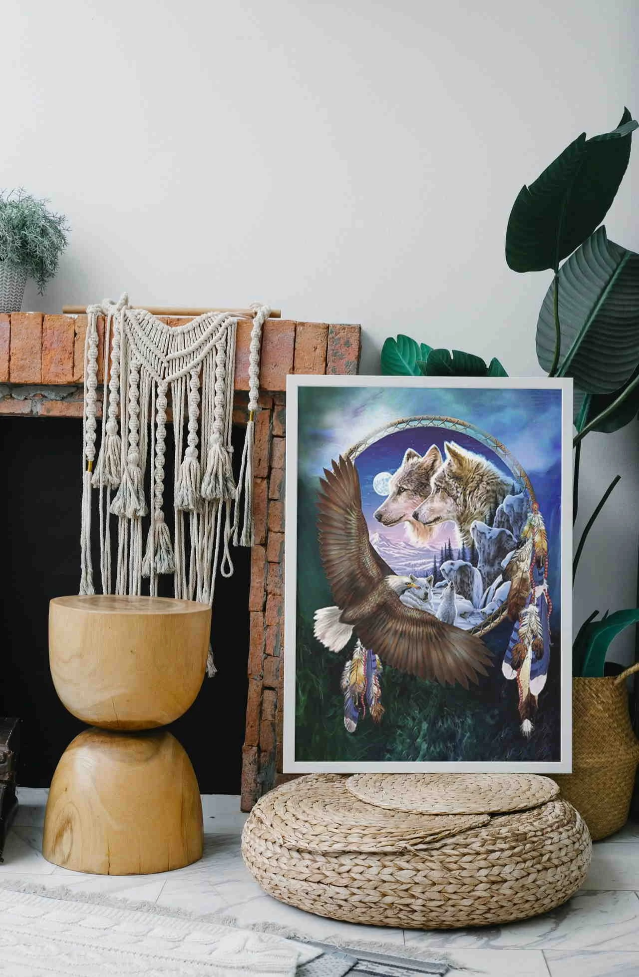 Cet attrape rêve nous montre une meute de loups fier à côté d’un aigle royal : quoi de mieux pour vous protéger des mauvais rêves ? Cette broderie diamant est fournie en kit complet et n’attends que vous.