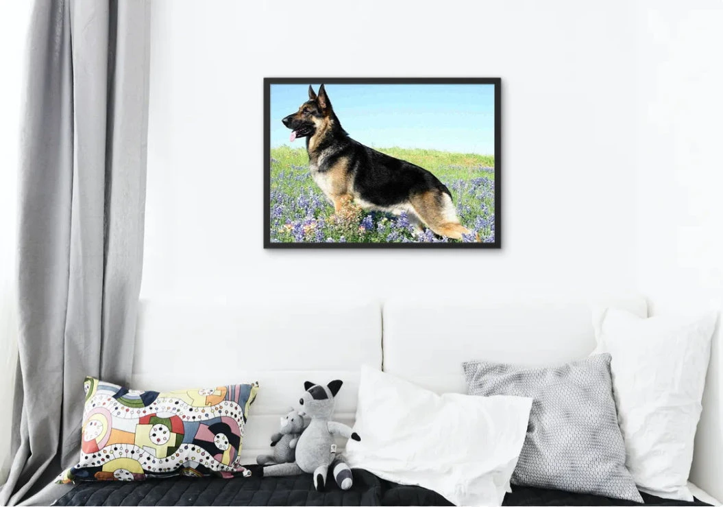 QUE DÎTES-VOUS D’UNE JOLIE DÉCORATION À L’EFFIGIE DE CE CHIEN FORT ET BRAVE ? PRENEZ UN INSTANT ET DÉTENDEZ-VOUS EN COLLANT VOS STRASS BRILLANTS SUR CETTE BRODERIE DIAMANT.