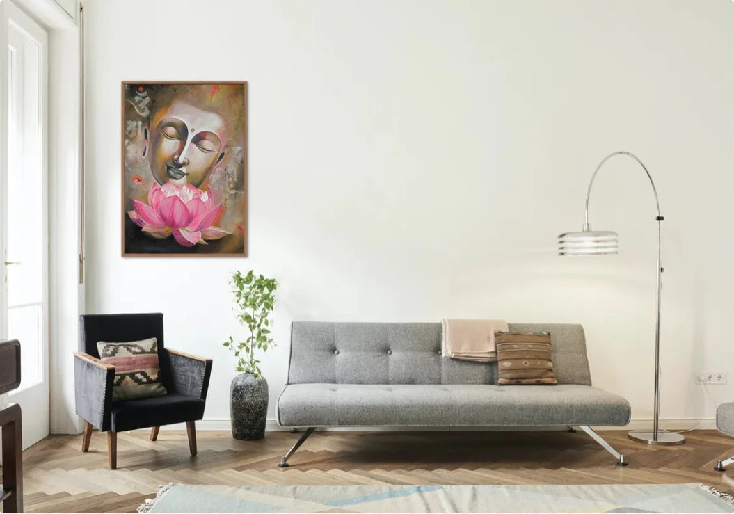 LA FLEUR DE LOTUS EST TRÈS SOUVENT UTILISÉE POUR REPRÉSENTER L’ÉLÉGANCE, LA BEAUTÉ ET LA PERFECTION… CELLE REPRÉSENTÉE SUR CETTE BRODERIE DIAMANT EST DE COULEUR ROSE, COULEUR DE L’AMOUR ET DE LA JOIE. LA REPRÉSENTATION DE BOUDDHA L’ACCOMPAGNE ET FORME UNE TOILE HARMONIEUSE.