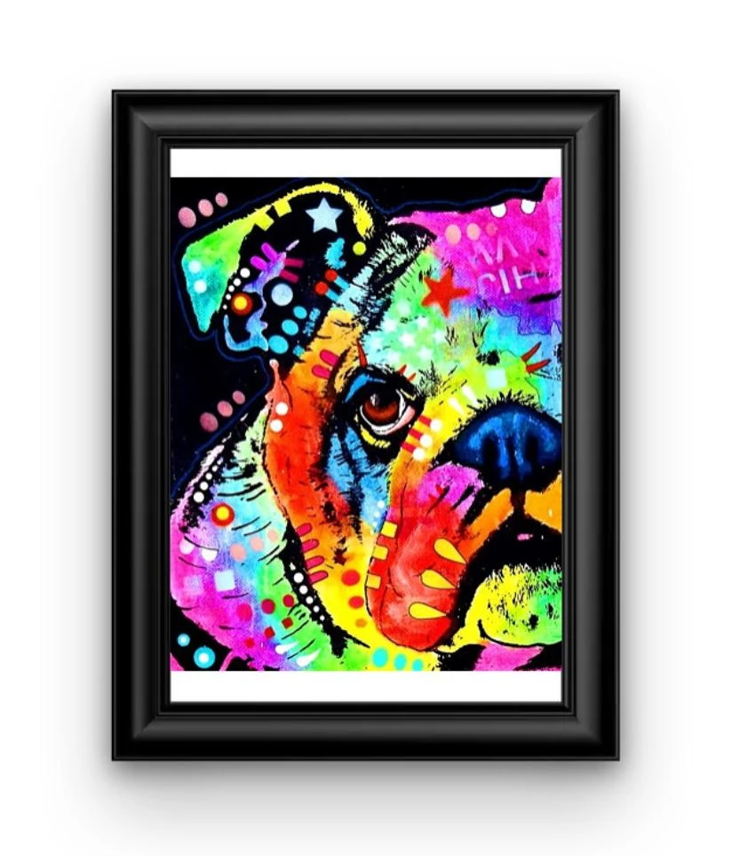 CETTE BOULE DE POILS EST RÉPUTÉE POUR RONFLER… VOUS L’AUREZ DEVINÉ, IL S’AGIT ICI D’UN MAGNIFIQUE BOULEDOGUE ANGLAIS ! CE CHIEN EST REPRÉSENTÉ SUR UNE DE NOS MERVEILLEUSES BRODERIES DIAMANTS. DONC N’ATTENDEZ PLUS, ET VENEZ CONFECTIONNER CETTE JOLIE TOILE.