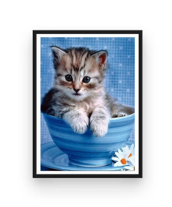 Comment ne pas craquer et fondre de bonheur devant cette magnifique Broderie Diamant Chaton dans Bol ? Ce mignon petit matou va vous faire passer un moment tout simplement unique et relaxant… Créez de vos mains cette œuvre et accrochez-la chez vous ! Ce chaton plaira beaucoup aux plus petits, alors n’hésitez pas à l’offrir aux gens que vous aimez.