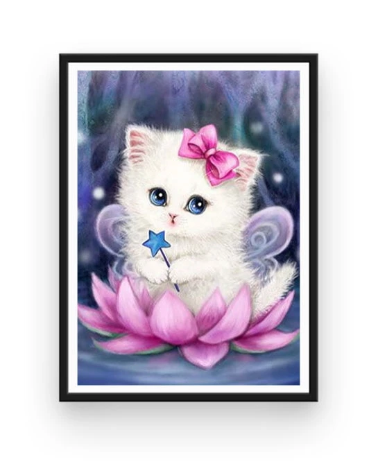 Comment ne pas craquer et fondre de douceur devant la Broderie Diamant Chaton Fée ? Cette œuvre unique en son genre nous montre un petit chat blanc déguisé en fée. Les couleurs vives et féeriques de cette broderie diamant sont idéales si vous souhaitez vous évader avec cet animal domestique que nous aimons tant. Collez vos strass dès maintenant !