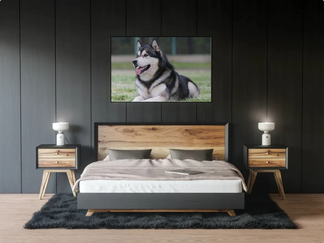 CE MAGNIFIQUE CHIEN ORIGINAIRE DE SIBÉRIE ET TRADITIONNELLEMENT UTILISÉ COMME CHIEN D’ATTELAGE EST REPRÉSENTÉ SUR UNE TOILE D’EXCEPTION. CETTE BRODERIE DIAMANT AUX ALLURES DE PHOTOGRAPHIE EST IDÉALE À ACCROCHER SUR UN MUR DE CHEZ SOI.