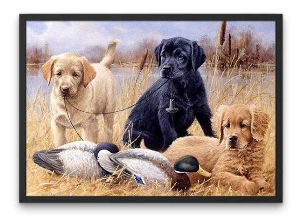 CETTE BRODERIE DIAMANT PRÉSENTE DES CHIENS ET DES CANARDS VIVANTS EN HARMONIE AVEC LA NATURE. SON ASPECT RESSEMBLANT À UNE PEINTURE VOUS FERA PASSER UN SUPERBE MOMENT LORS DE LA CONFECTION… SUPERBE RENDU ET DÉCORATION D’EXCEPTION.