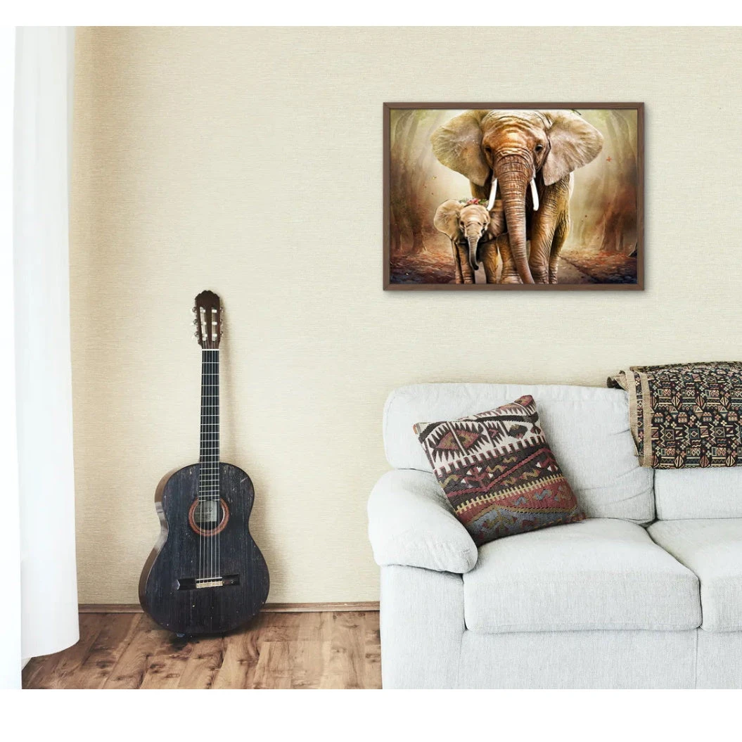 CES DEUX ANIMAUX REGARDENT AU LOIN DANS LA MÊME DIRECTION, CE QUI TÉMOIGNE DE LEUR COMPLICITÉ ET DE LEUR DÉTERMINATION. CETTE SUPERBE TOILE VA APPORTER L’ESPRIT SAGE ET PUR DE L’ÉLÉPHANT DANS VOTRE INTÉRIEUR, TOUT EN VOUS RELAXANT LORS DE LA CONFECTION.