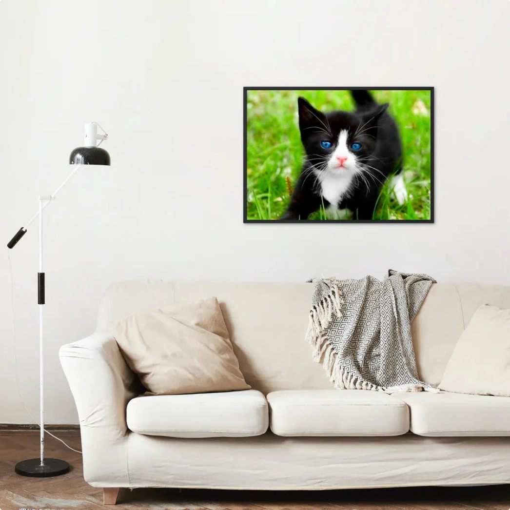 La Broderie Diamant Jeune Chaton nous présente un magnifique petit chaton noir et blanc, qui possède une particularité des plus attirantes : de jolis yeux bleus. Si vous aimez ces boules de poils, et que vous souhaitez vous vider la tête après une dure journée : confectionnez cette superbe broderie diamant en y collant les strass colorés du kit !