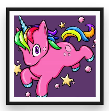 RÉVEILLEZ VOTRE ÂME D’ENFANT, OU BIEN OFFREZ CETTE BRODERIE DIAMANT LICORNE CARTOON À UN BRODEUR EN HERBE ! CETTE SUPERBE TOILE AUX NUANCES DE ROSE NOUS RAPPELLE LES DESSINS ANIMÉS DÉJANTÉS QUE NOUS REGARDIONS AUPARAVANT… ENCADREZ CETTE ŒUVRE COLORÉE ET FAITES PLAISIR AUX PLUS PETITS !