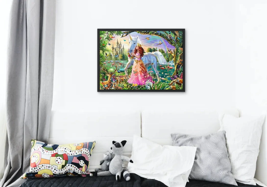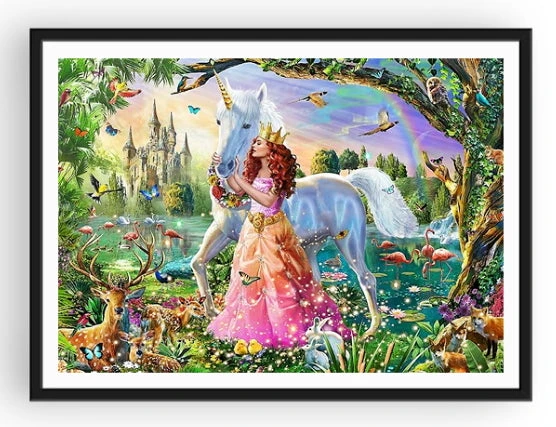 CET ANIMAL LÉGENDAIRE A ÉTÉ APPRIVOISÉ PAR LA PRINCESSE PRÉSENTE SUR CETTE ŒUVRE FÉERIQUE. CONFECTIONNEZ LA BRODERIE DIAMANT LICORNE SAUVAGE ET PASSEZ UN MOMENT DE DÉTENTE INOUÏ SEUL OU ACCOMPAGNÉ. CE SOMPTUEUX DÉCOR FERA DE CETTE TOILE UNE DÉCO TRÈS APPRÉCIÉE PAR LES FANS EN RECHERCHE DE FÉERIE.