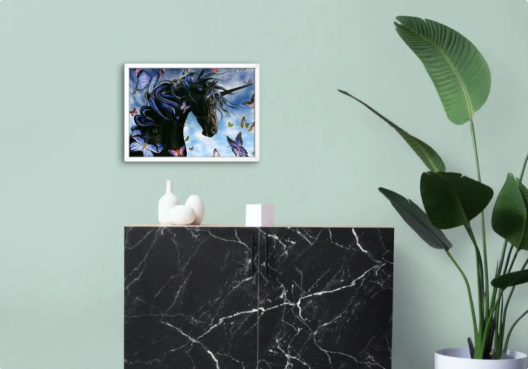 CE SOMPTUEUX MÉLANGE ENTRE LES TÉNÈBRES AVEC CETTE LICORNE SOMBRE, ET LES COULEURS VIVES AVEC CES PAPILLONS VIOLETS, VA VOUS ENVOÛTER LE TEMPS D’UNE CONFECTION. LA BRODERIE DIAMANT LICORNE TÉNÉBREUSE EST IDÉALE SI VOUS SOUHAITEZ CRÉER ET PASSER UN INSTANT THÉRAPEUTIQUE EXCELLENT POUR VOTRE CONCENTRATION ET VOTRE RÉFLEXION.