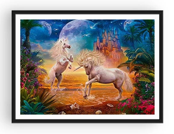 ADOPTEZ CETTE BRODERIE DIAMANT LICORNES ET CHÂTEAU AINSI QUE SON DÉCOR IMAGINAIRE INCROYABLE. CES DEUX LICORNES ONT L’AIR SI SAUVAGE ET PUISSANTES… LE SENTIMENT DE LIBERTÉ QUI ÉMANE DE CE TABLEAU VOUS FERA PASSER UN INCROYABLE MOMENT CRÉATIF AVEC VOTRE ACTIVITÉ THÉRAPEUTIQUE FAVORITE !