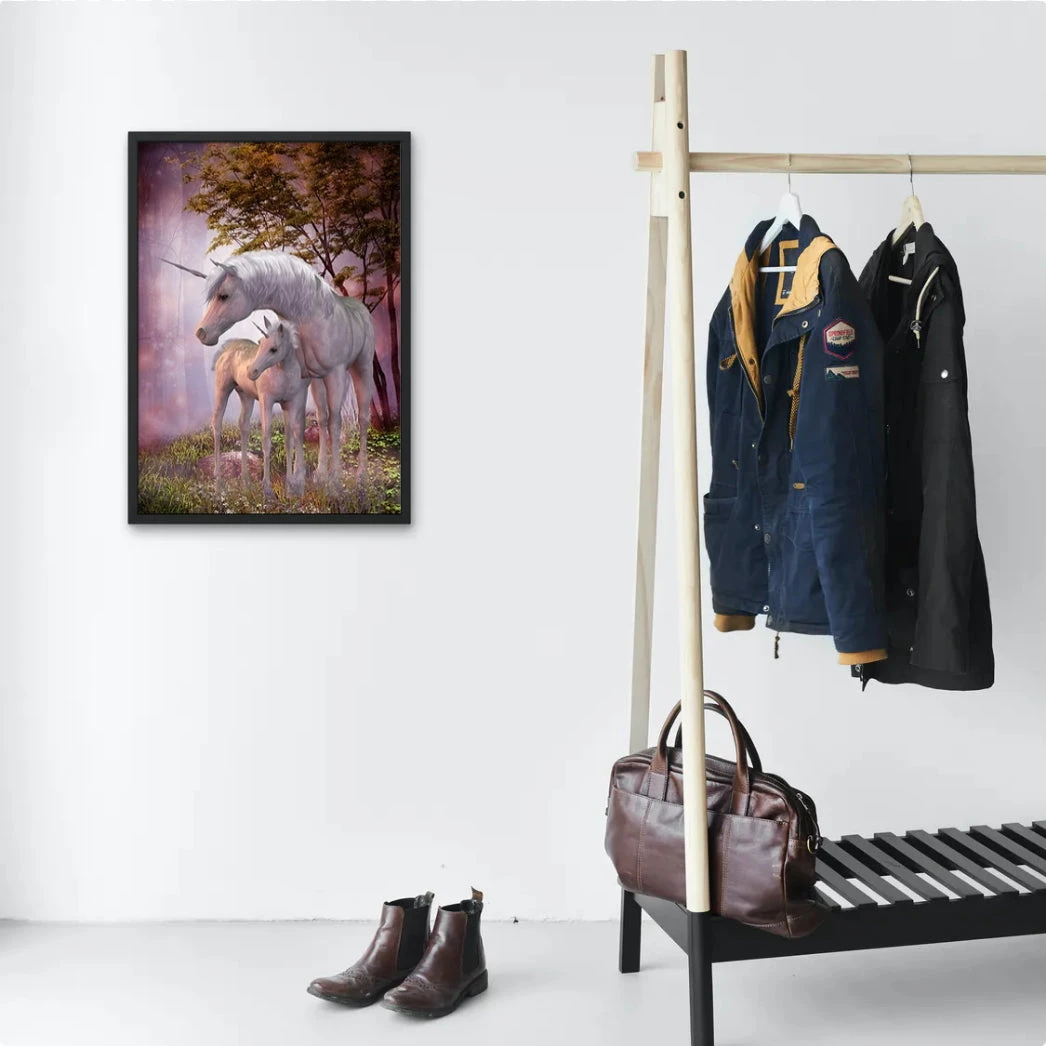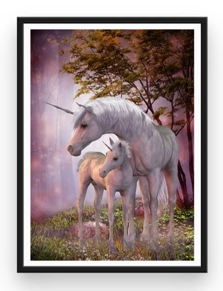 QUE DÎTES-VOUS DE CETTE CHOUETTE REPRÉSENTATION D’UNE MAMAN LICORNE ET DE SON PETIT ? CES DEUX ANIMAUX FANTASTIQUES ONT L’AIR SAUVAGES ET CRAINTIFS… MAIS NE VOUS INQUIÉTEZ PAS : AVEC LA BRODERIE DIAMANT LICORNES SAUVAGES, IL EST POSSIBLE DE LES APPRIVOISER ! ALORS N’ATTENDEZ-PLUS ET POSEZ DÈS MAINTENANT VOS STRASS ÉTINCELANTS SUR CETTE ŒUVRE FÉERIQUE ET RELAXANTE.