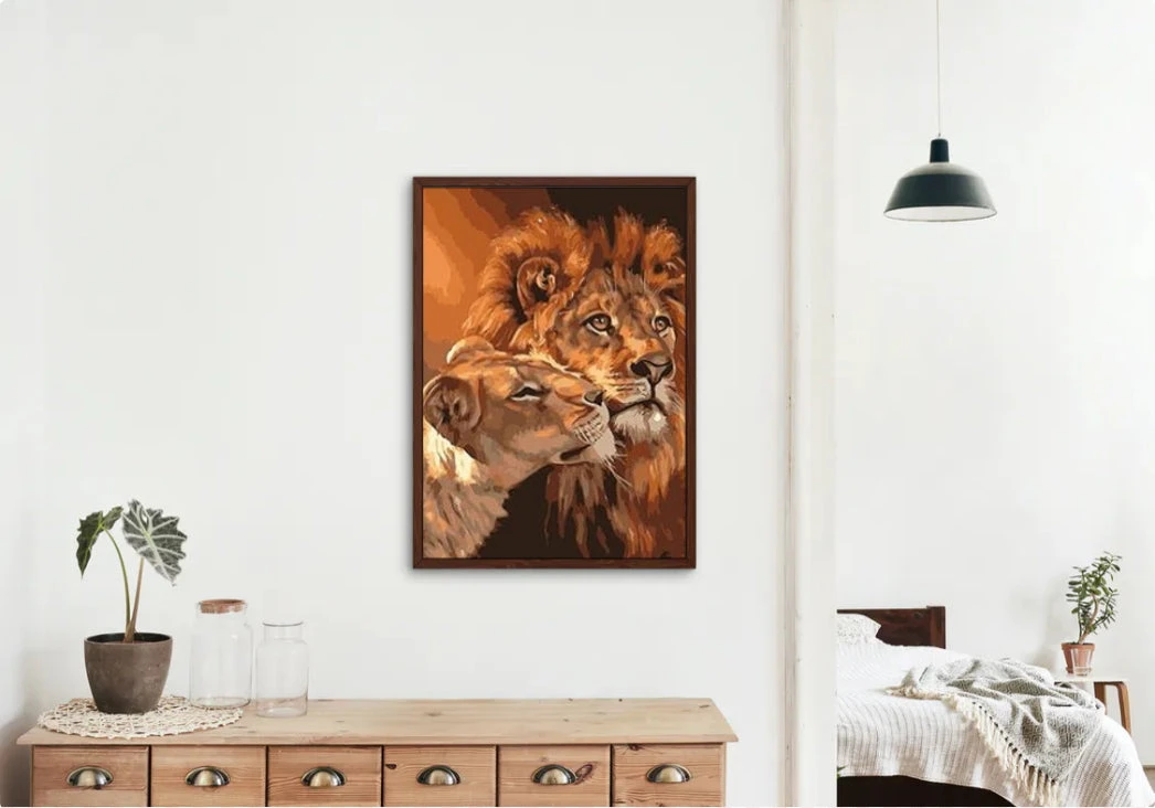 Le lion et la lionne forment le duo le plus puissant de la savane. Et cette Broderie Diamant Lion et Lionne nous le montre bien : deux animaux totalement majestueux ! Collez vos strass et passez un moment unique en son genre, sans oublier la décoration inédite qui plaira à tous vos amis.