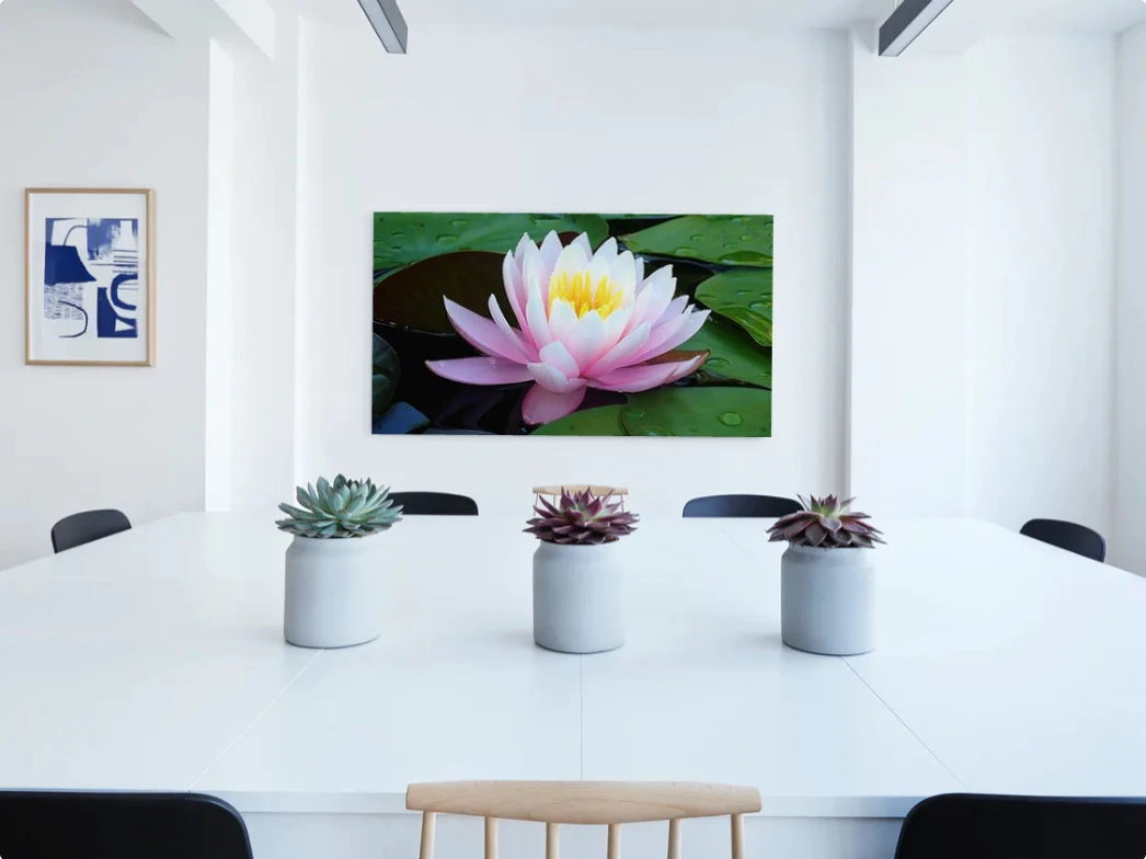 LA FLEUR DE LOTUS EST RECONNAISSABLE GRĂ‚CE Ă€ SON CENTRE AUX PÉTALES DE COULEURS JAUNES. CETTE BRODERIE DIAMANT NOUS LAISSE VOIR UNE DE CES FLEURS, SI JOLIMENT REPRÉSENTÉE AU MILIEU DE FEUILLES DE NÉNUPHARS… COLLEZ VOS DIAMANTS ET DÉTENDEZ-VOUS AVEC CETTE DÉCORATION AUX ALLURES DE NATURE CALME.
