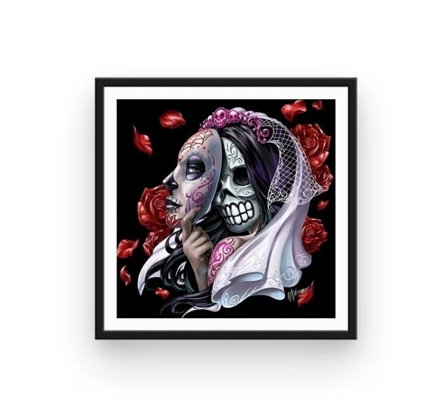 La mariée dissimule son vrai visage… Car elle est en réalité maquillée telle une tête de mort calavera ! Cette très originale Broderie Diamant Mariage Calavera saura vous détendre comme il se doit, et surtout selon les règles de l’art créatif. Prenez en main vos stylos et collez les strass uns par uns.