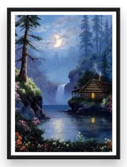 ADMIREZ CETTE SUPERBE VALLÉE AVEC SA CASCADE ET SON DÉCOR FLEURI… LE CLAIR DE LUNE FAIT TOUT LE CHARME DE CETTE BRODERIE DIAMANT DE PAYSAGE. CETTE TOILE PEUT ÊTRE ACCROCHÉE AU MUR TEL UN TABLEAU DE MAÎTRE, ET DÉCORER VOTRE INTÉRIEUR DE MANIÈRE TOTALEMENT UNIQUE ET CRÉATIVE…