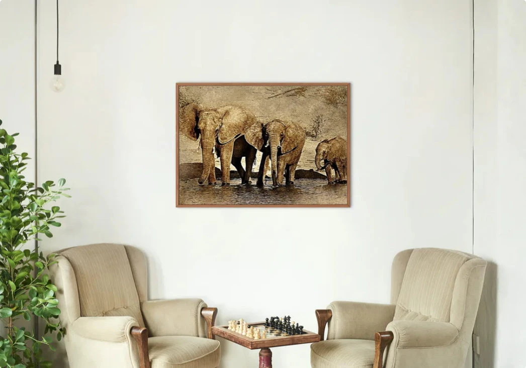 UNE PHOTO AUX ALLURES DE PHOTO DE FAMILLE VOUS EST PRÉSENTÉE AVEC CETTE BRODERIE DIAMANT D’ÉLÉPHANTS ! CES ANIMAUX MYTHIQUES VIENDRONT AGRÉMENTER VOTRE DÉCORATION D’UNE TOUCHE D’AUTHENTICITÉ ET D’ÉTAT SAUVAGE. SANS OUBLIER LE MOMENT RELAXANT PROCURÉ PAR VOTRE ACTIVITÉ MANUELLE PRÉFÉRÉE BIEN ENTENDU.