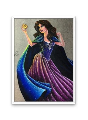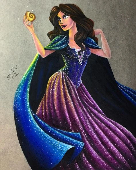 CE PERSONNAGE FAIT PARTI DES MÉCHANTS DE L’UNIVERS DE LA PETITE SIRÈNE. ON L’APPELLE VANESSA, ET ELLE N’EST AUTRE QUE L’ALTER EGO HUMAIN DE LA SORCIÈRE URSULA… SA ROBE BLEUE ET VIOLETTE BRILLERA DE MILLE FEUX LORSQUE VOUS Y AUREZ DÉPOSÉ VOS MAGNIFIQUES DIAMANTS ! UNE SUPERBE TOILE À AFFICHER CHEZ VOUS.